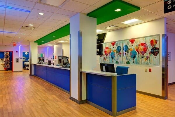 - Two trauma suites with advanced critical care equipment designed exclusively for pediatric patients and in-room digital imaging